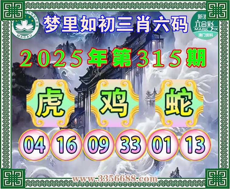 315期:『梦里如初』 🪢三肖六码🪢【鸡蛇】开:虎04准上榜高手