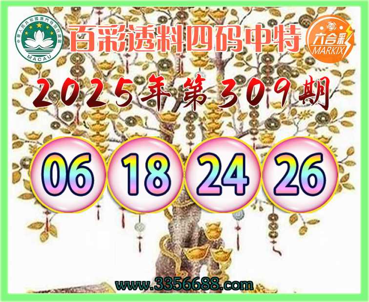 309期: 百彩透料 🀄四码中特🀄【06.18.24.26】开:06准上榜高手