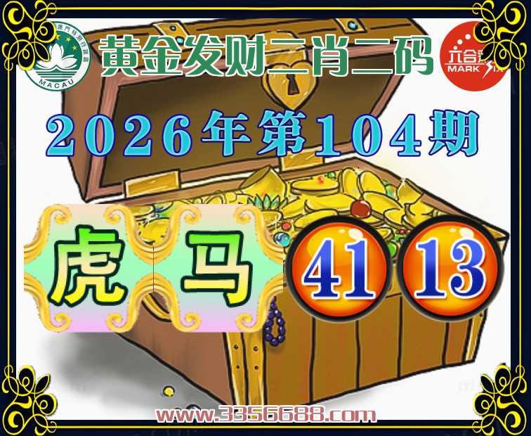 104期:《黄金发财》 🥧二肖二码🥧【虎】【41.13】开:马01准上榜高手
