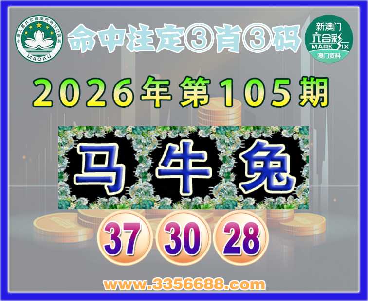 105期:〖命中注定〗 👉③肖③码👉【马牛】【37.30.28】开:兔28准上榜高手