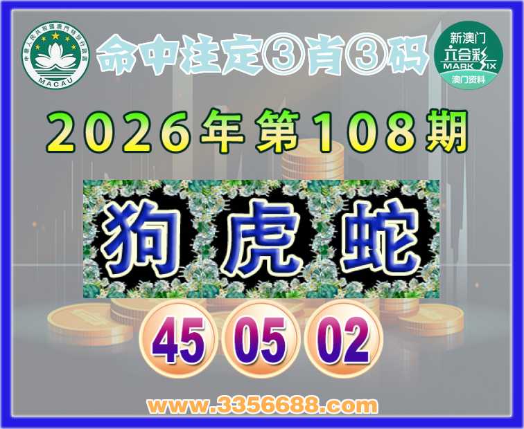 108期:〖命中注定〗 👉③肖③码👉【虎蛇】【45.05.02】开:狗45准上榜高手