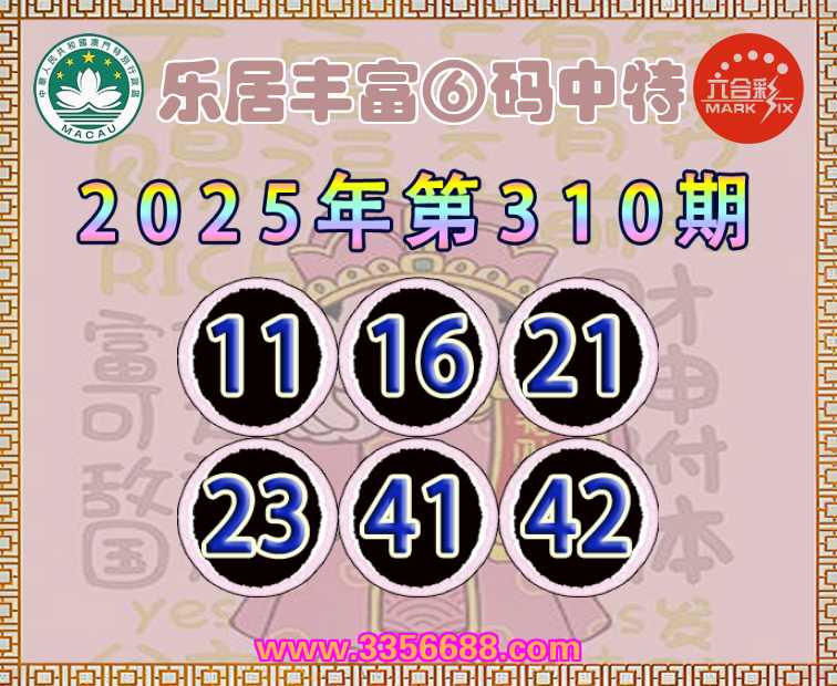 310期:【乐居丰富】 🪢⑥码中特🪢【11.16.21.23.41.42】开:16准上榜高手
