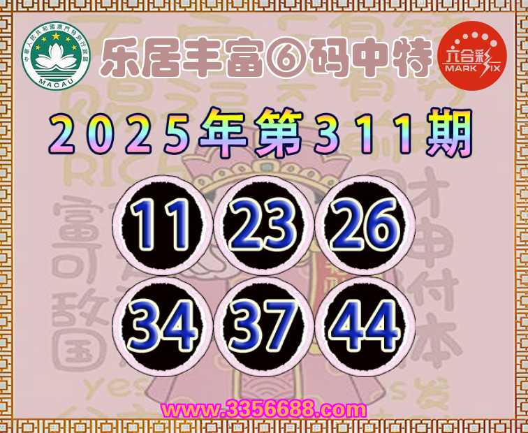 311期:【乐居丰富】 🪢⑥码中特🪢【11.23.26.34.37.44】开:37准上榜高手