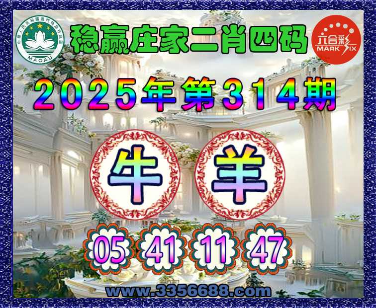 314期: 🪢『稳赢庄家』 🪢二肖四码🪢【牛】【05.41.11.47】开:羊23准上榜高手