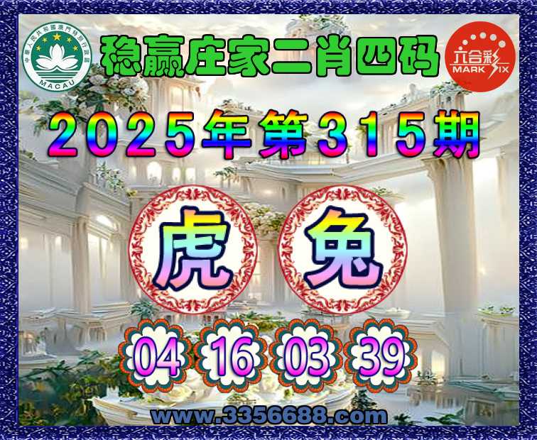 315期: 🪢『稳赢庄家』 🪢二肖四码🪢【兔】【04.16.03.39】开:虎04准上榜高手