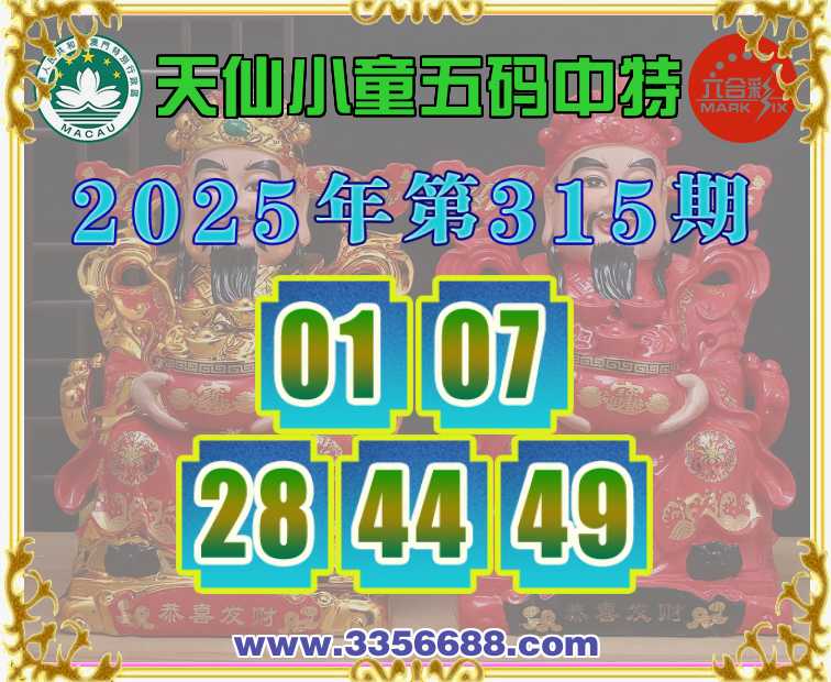 315期:〖天仙小童〗 👘五码中特👘【01.07.28.44.49】开:04