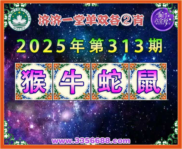 313期:《济济一堂》 👑单双各②肖👑【猴.牛.蛇.鼠】开:龙38
