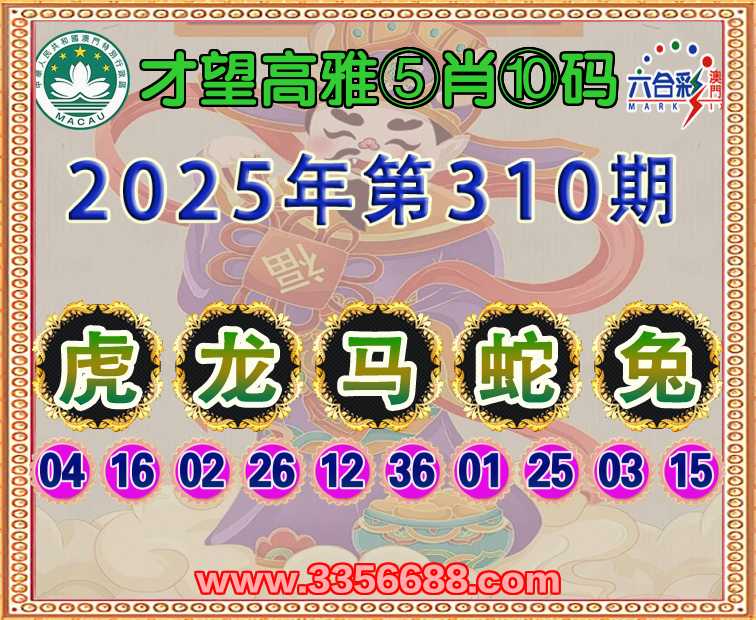 310期:《才望高雅》 😍⑤肖⑩码😍【龙马蛇兔】开:虎16