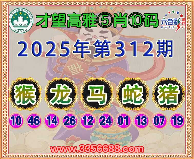 312期:《才望高雅》 😍⑤肖⑩码😍【猴马蛇猪】开:龙14准上榜高手
