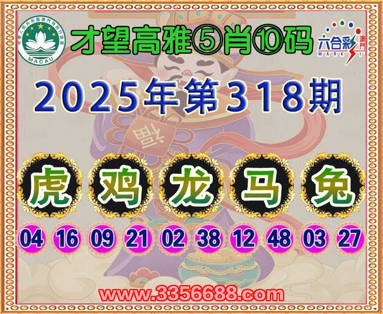 318期:《才望高雅》 😍⑤肖⑩码😍【虎鸡龙马兔】开:00准