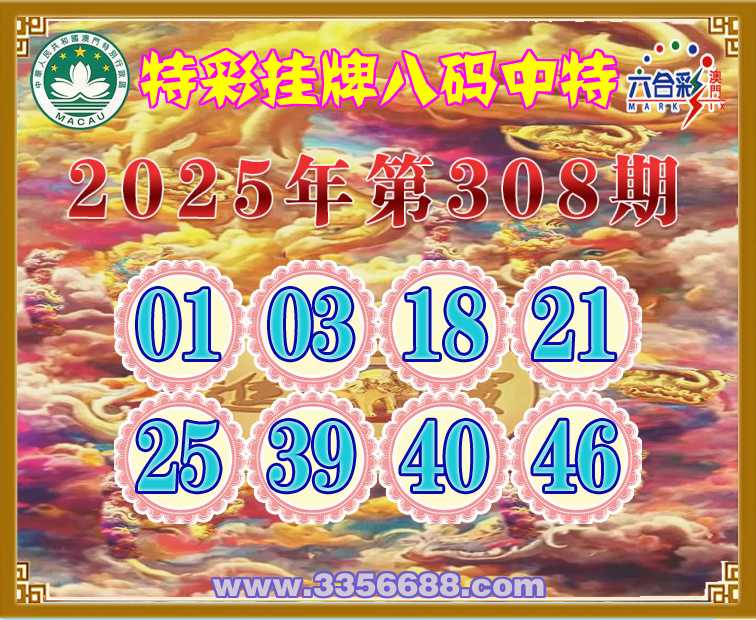 308期:『特彩挂牌』  ♣️八码中特 ♣️开:39