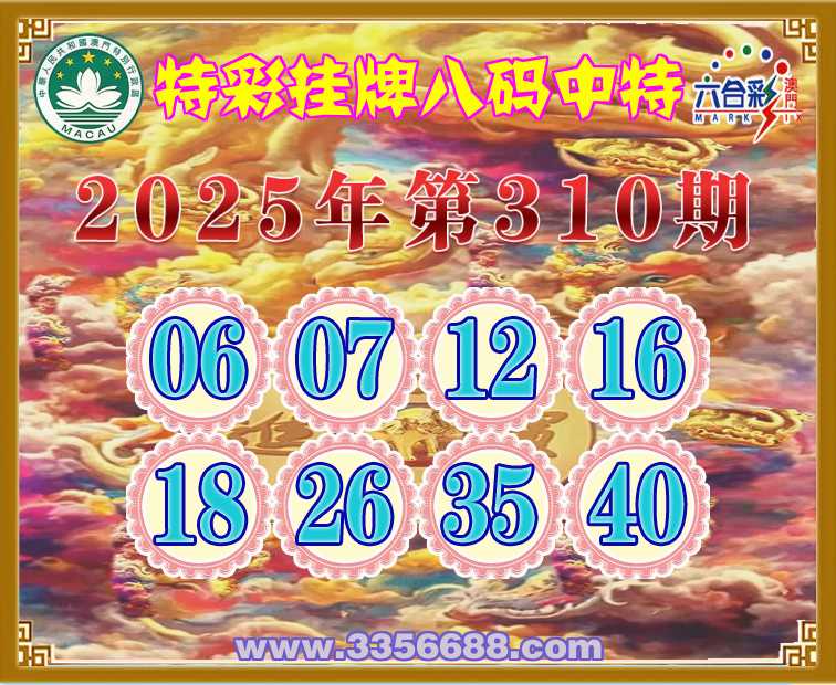 310期:『特彩挂牌』  ♣️八码中特 ♣️开:16