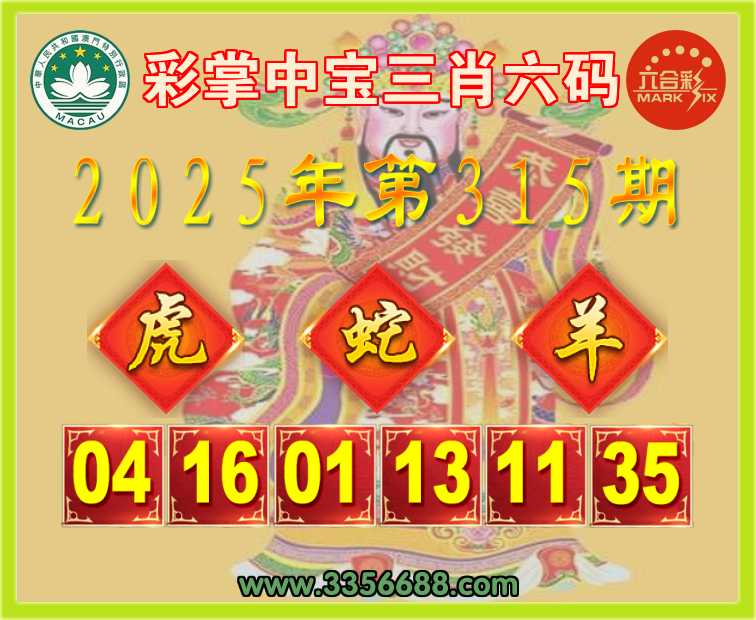 315期:【彩掌中宝】 🧏‍♀️三肖六码🧏‍♀️【蛇羊】开:虎04