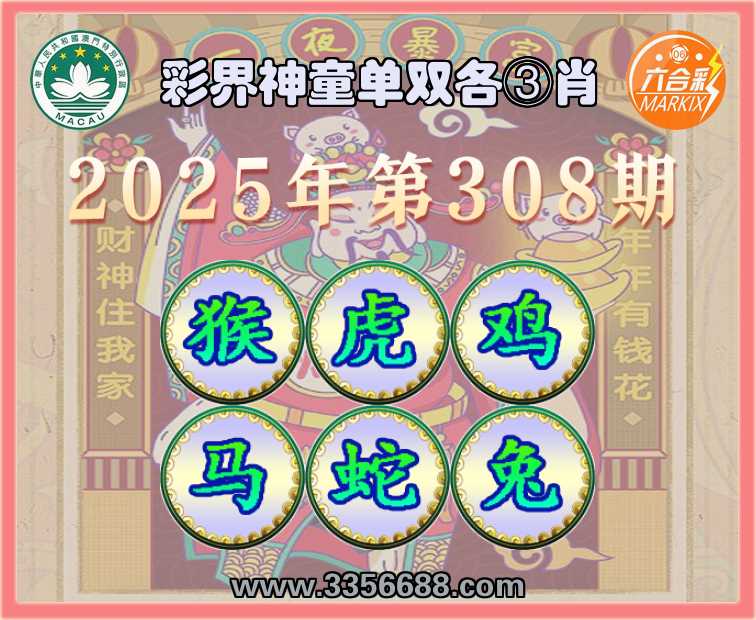 308期:《彩界神童》 🐁单双各③肖🐁【猴.虎.鸡.马.蛇.】开:兔39