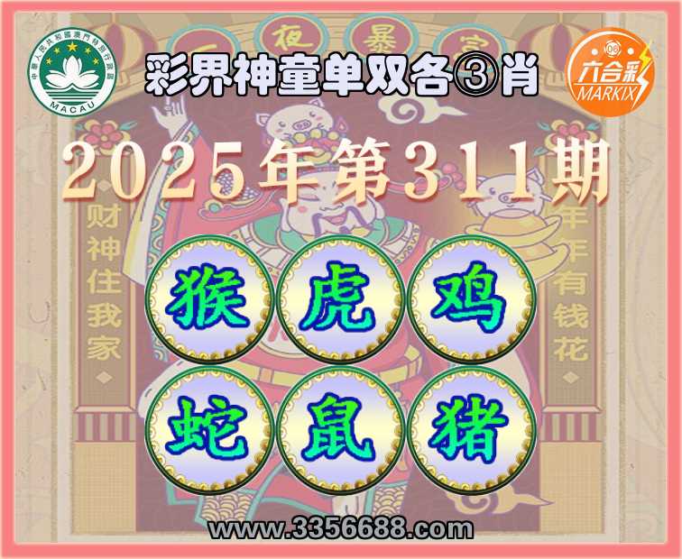 311期:《彩界神童》 🐁单双各③肖🐁【猴.虎.鸡..鼠.猪】开:蛇37
