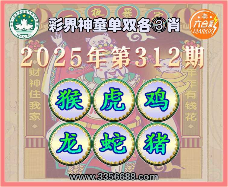 312期:《彩界神童》 🐁单双各③肖🐁【猴.虎.鸡..蛇.猪】开:龙14