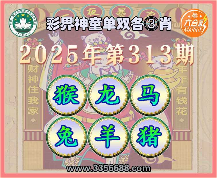 313期:《彩界神童》 🐁单双各③肖🐁【猴..马.兔.羊.猪】开:龙38