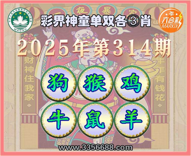 314期:《彩界神童》 🐁单双各③肖🐁【狗.猴.鸡.牛.鼠.】开:羊23