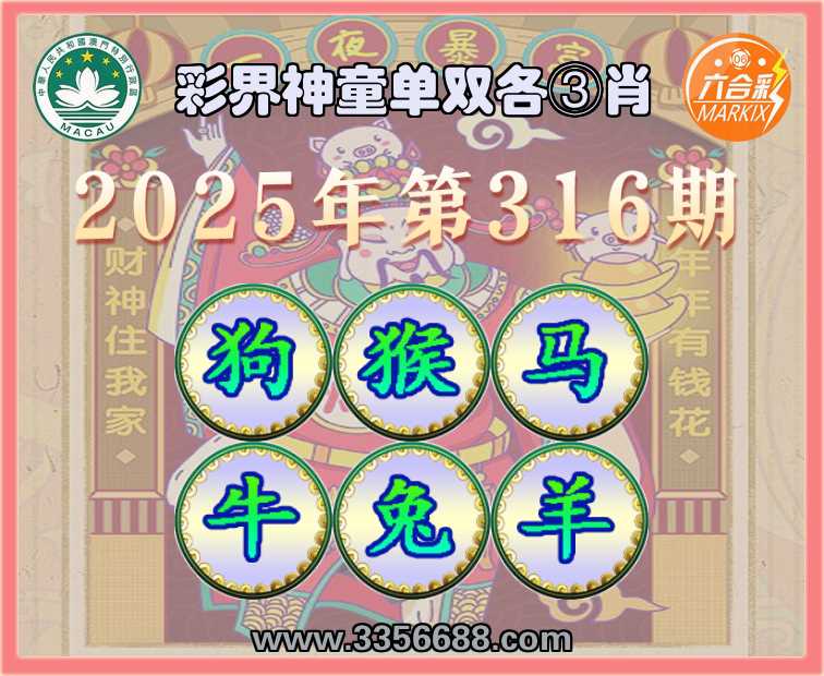 316期:《彩界神童》 🐁单双各③肖🐁【狗.猴..牛.兔.羊】开:马24
