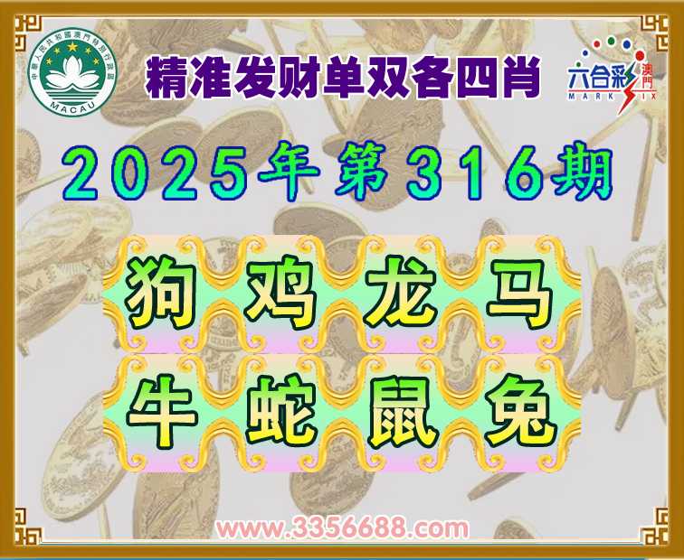 316期:【精准发财】  ♣️单双各四肖 ♣️开:马24