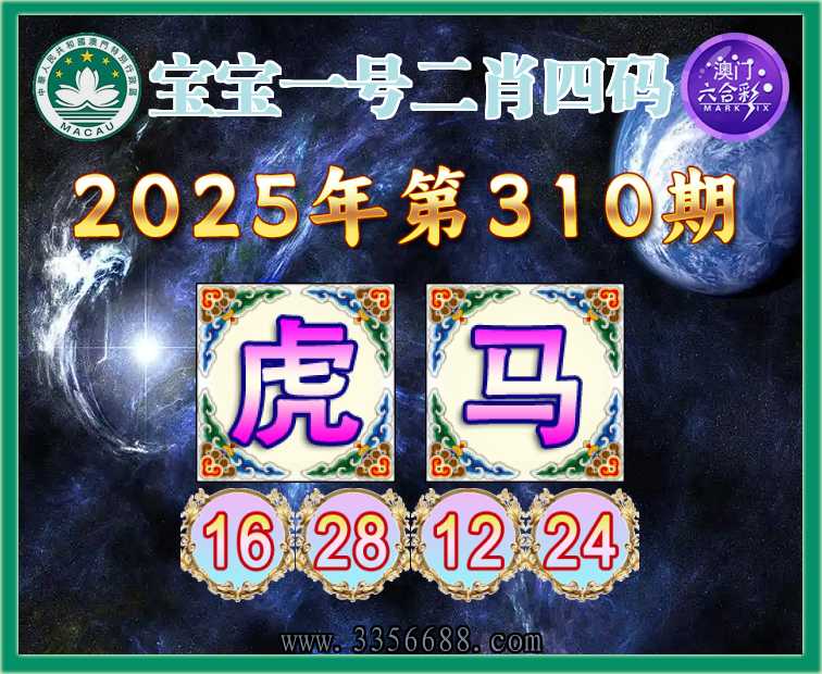 310期:《宝宝一号》 🥬二肖四码🥬【马】【16.28.12.24】开:虎16