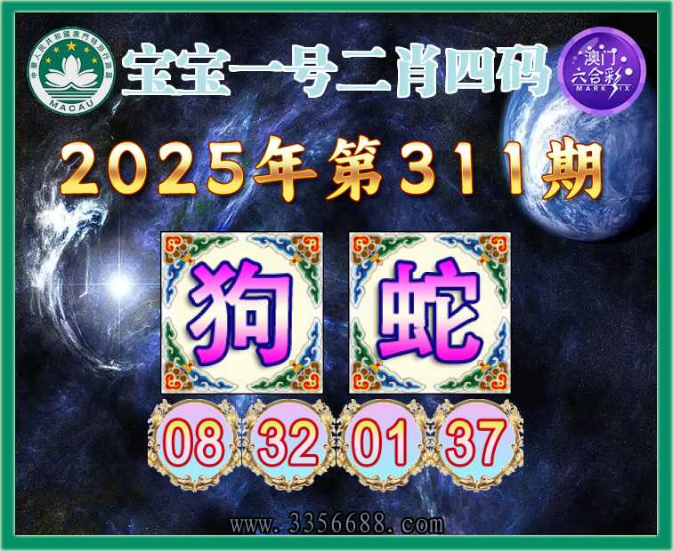 311期:《宝宝一号》 🥬二肖四码🥬【狗】【08.32.01.37】开:蛇37