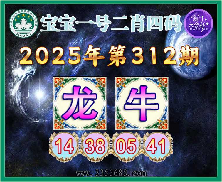 312期:《宝宝一号》 🥬二肖四码🥬【牛】【14.38.05.41】开:龙14