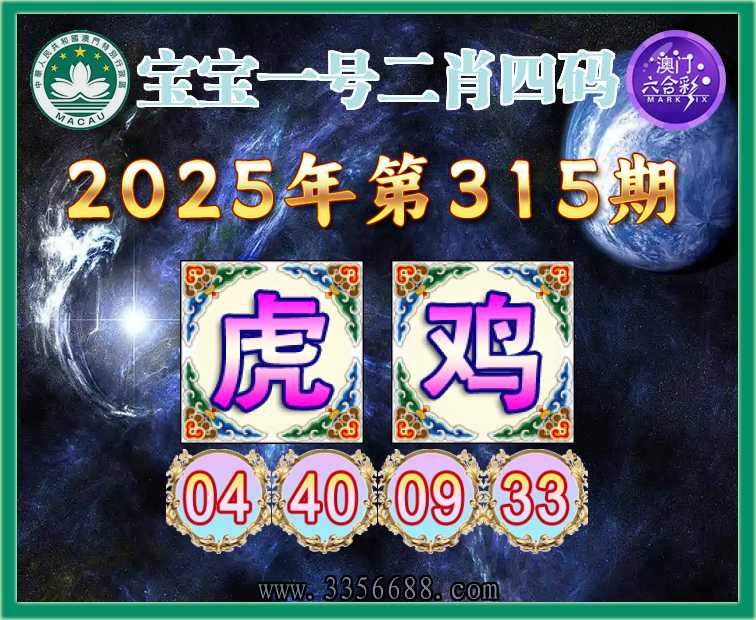 315期:《宝宝一号》 🥬二肖四码🥬【鸡】【04.40.09.33】开:虎04