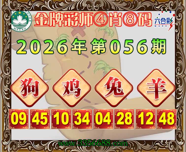 056期:《金牌彩师》 🧩④肖⑧码🧩【狗鸡兔】开:羊48准上榜高手