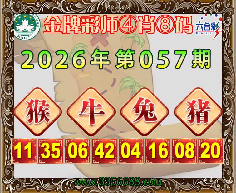 057期:《金牌彩师》 🧩④肖⑧码🧩【牛兔猪】开:猴23准上榜高手