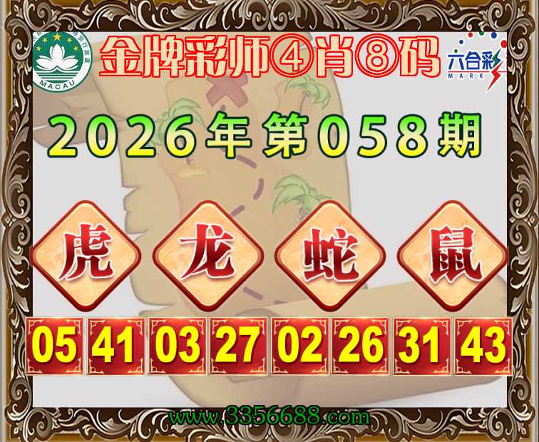 058期:《金牌彩师》 🧩④肖⑧码🧩【虎龙蛇】开:鼠31准上榜高手
