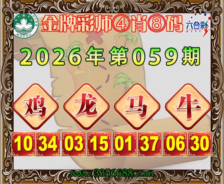 059期:《金牌彩师》 🧩④肖⑧码🧩【龙马牛】开:鸡10准上榜高手