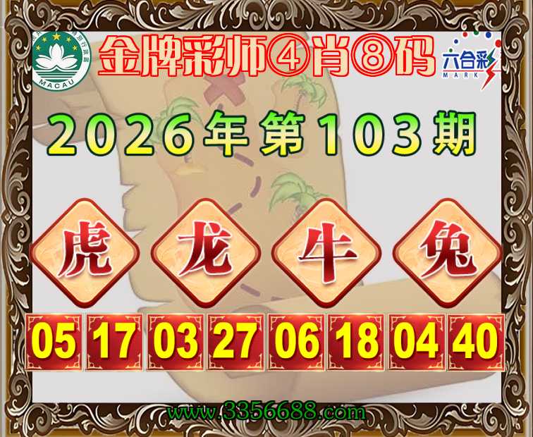 103期:《金牌彩师》 🧩④肖⑧码🧩【虎龙兔】开:牛06准上榜高手