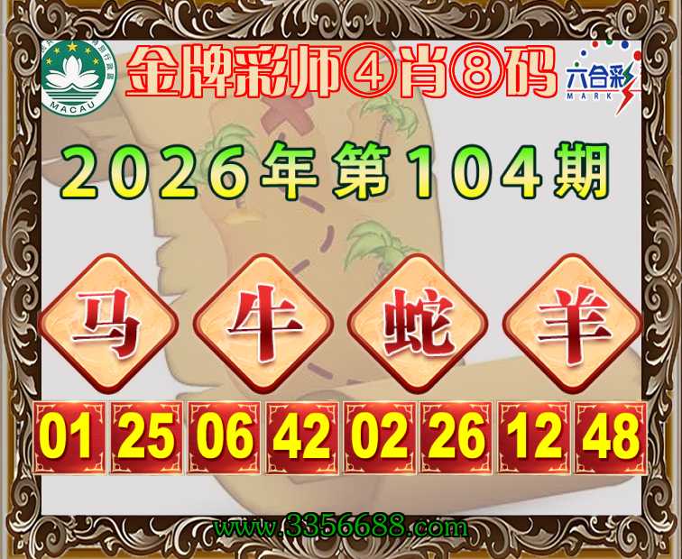 104期:《金牌彩师》 🧩④肖⑧码🧩【牛蛇羊】开:马01准上榜高手