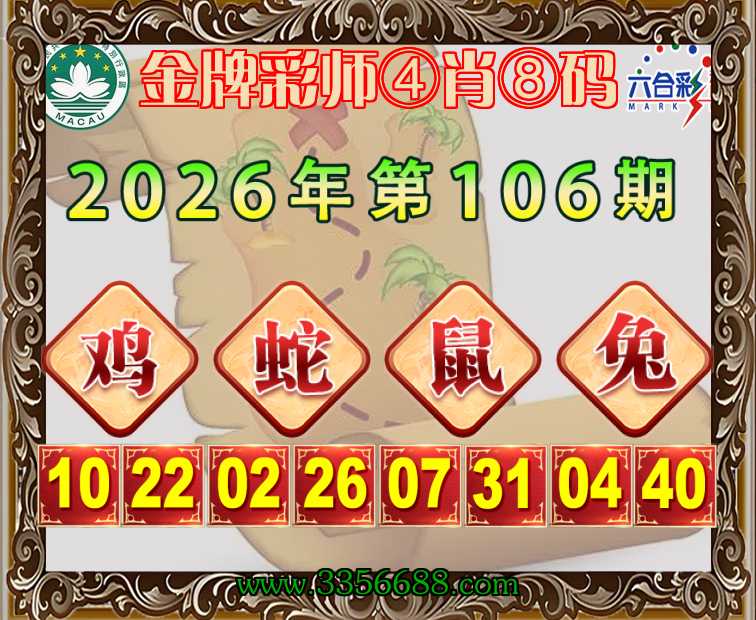 106期:《金牌彩师》 🧩④肖⑧码🧩【蛇鼠兔】开:鸡22准上榜高手