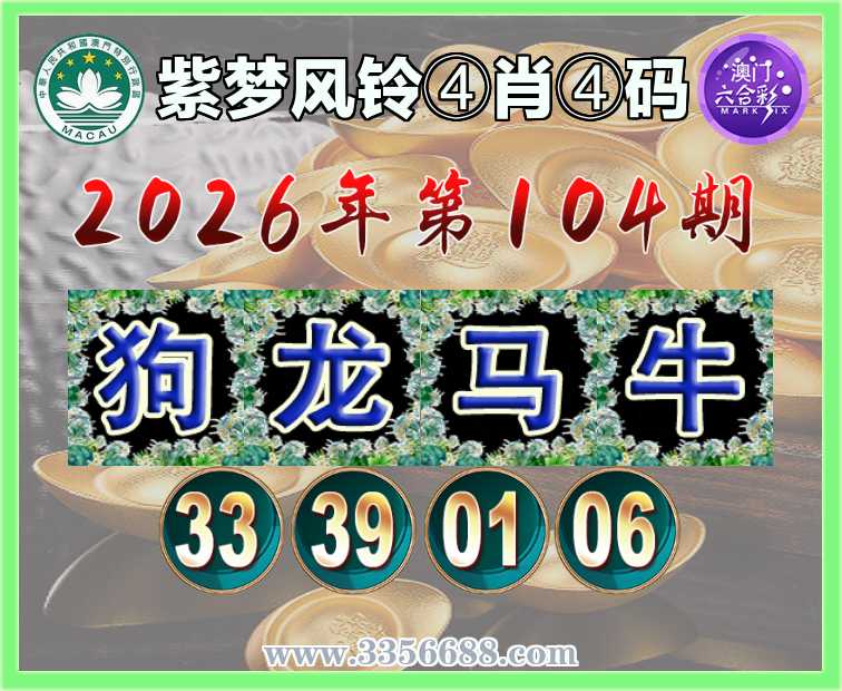 104期:〖紫梦风铃〗 ♠️④肖④码♠️【狗龙牛】【33.39.01.06】开:马01准上榜高手