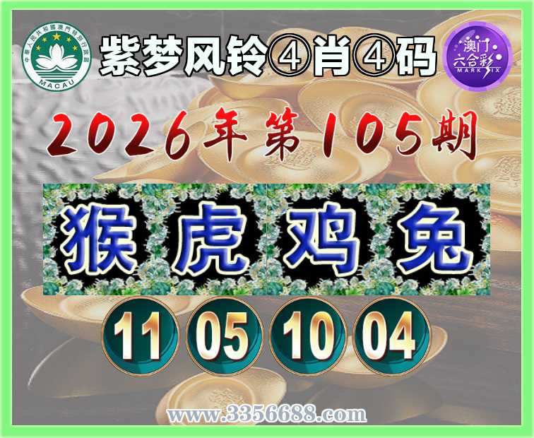 105期:〖紫梦风铃〗 ♠️④肖④码♠️【猴虎鸡】【11.05.10.04】开:兔28准上榜高手