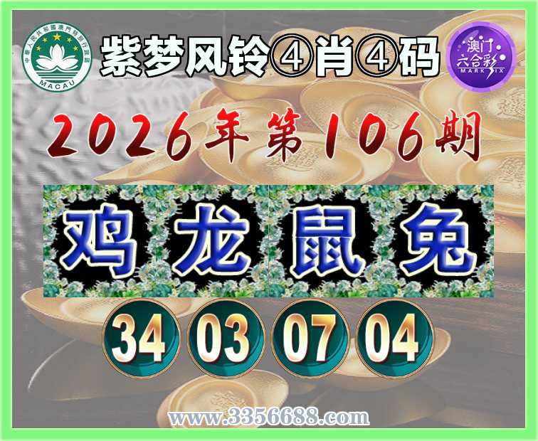 106期:〖紫梦风铃〗 ♠️④肖④码♠️【龙鼠兔】【34.03.07.04】开:鸡22准上榜高手