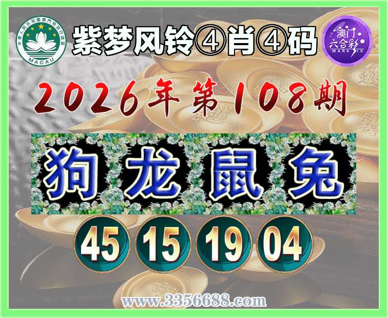 108期:〖紫梦风铃〗 ♠️④肖④码♠️【龙鼠兔】【45.15.19.04】开:狗45准上榜高手